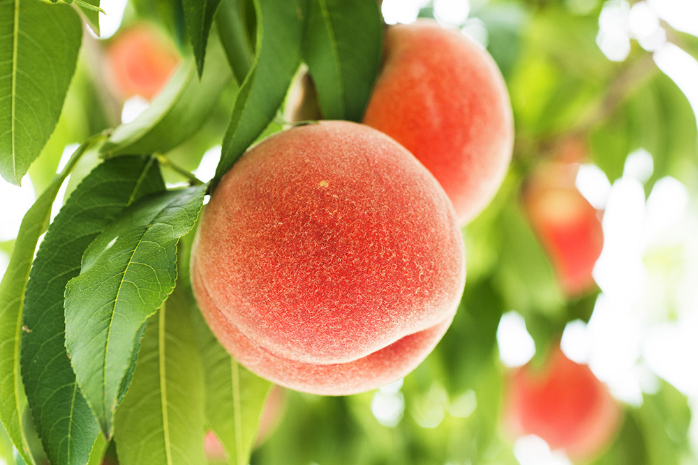 昼夜の寒暖差が大きく糖度が高くなりやすい山形県。代表的な「あかつき」「川中島白桃」のほか、「黄金桃」など黄桃、とても硬い「おどろき」など、さまざまな桃があります。