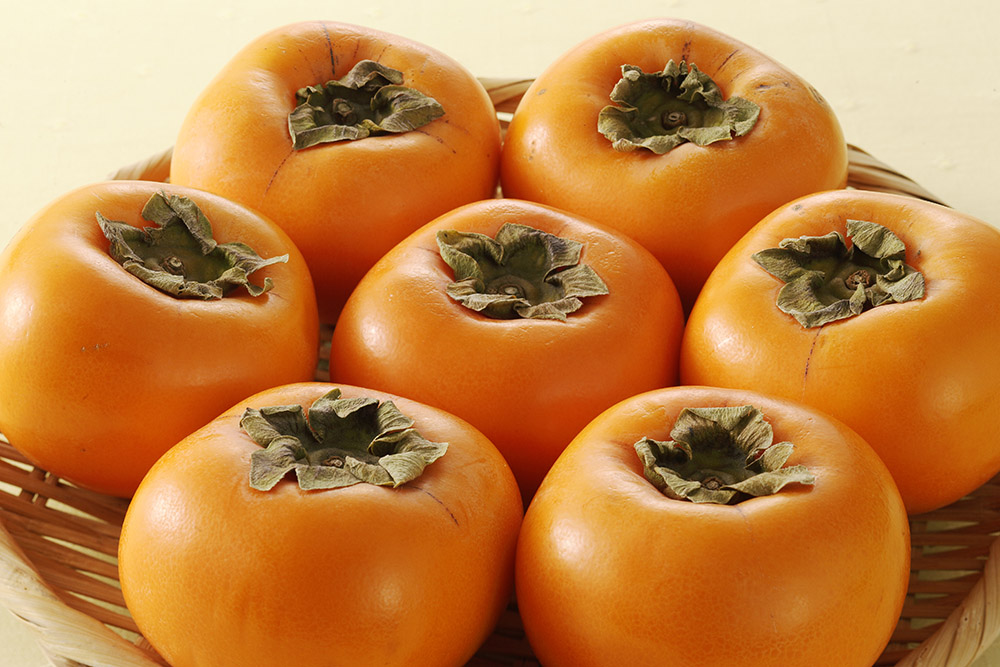 「庄内柿」は甘みたっぷりの四角い種無し柿。正式品種名は「平核無(ひらたねなし)」です。渋柿のため炭酸ガスやアルコールなどでの渋抜き作業を経ておいしい柿になります。
