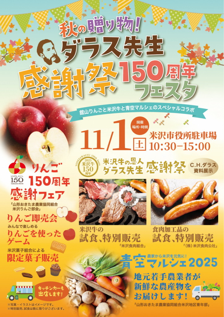 秋の贈り物!ダラス先生感謝祭150周年フェスタ ~舘山りんごと米沢牛と青空マルシェのスペシャルコラボ~